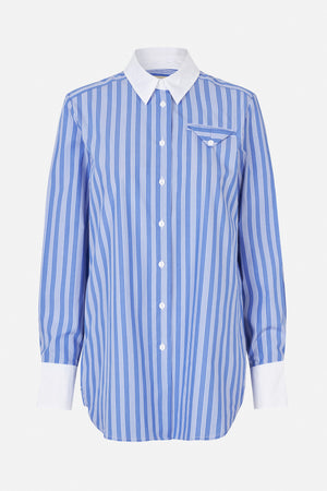 The Mejra Shirt is a wardrobe essential that seamlessly blends timeless design with everyday functionality. Crafted from organic cotton, this classic crisp shirt offers a straight fit for a clean, polished silhouette. The classic collar and button-down closure enhance its versatility, while the small chest pocket and embroidered BP logo at the back of the neck add subtle, stylish details. Pair the Mejra Shirt with tailored trousers and loafers for a polished office look, or with jeans and sneakers for an elevated casual outfit.