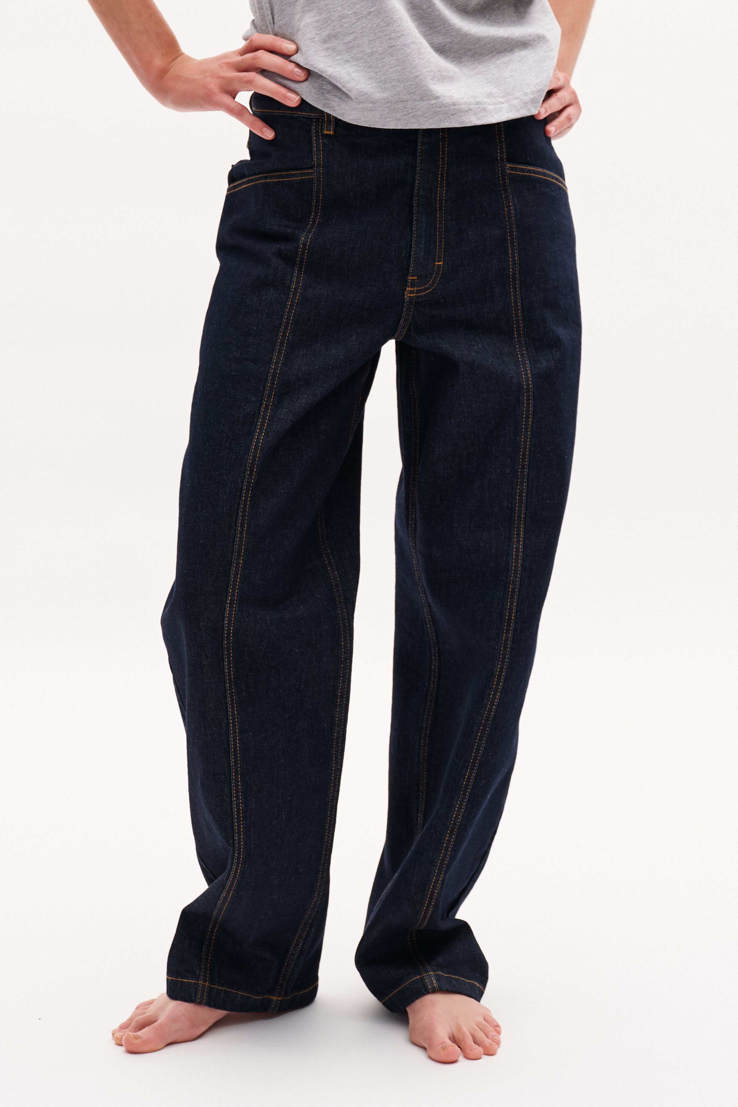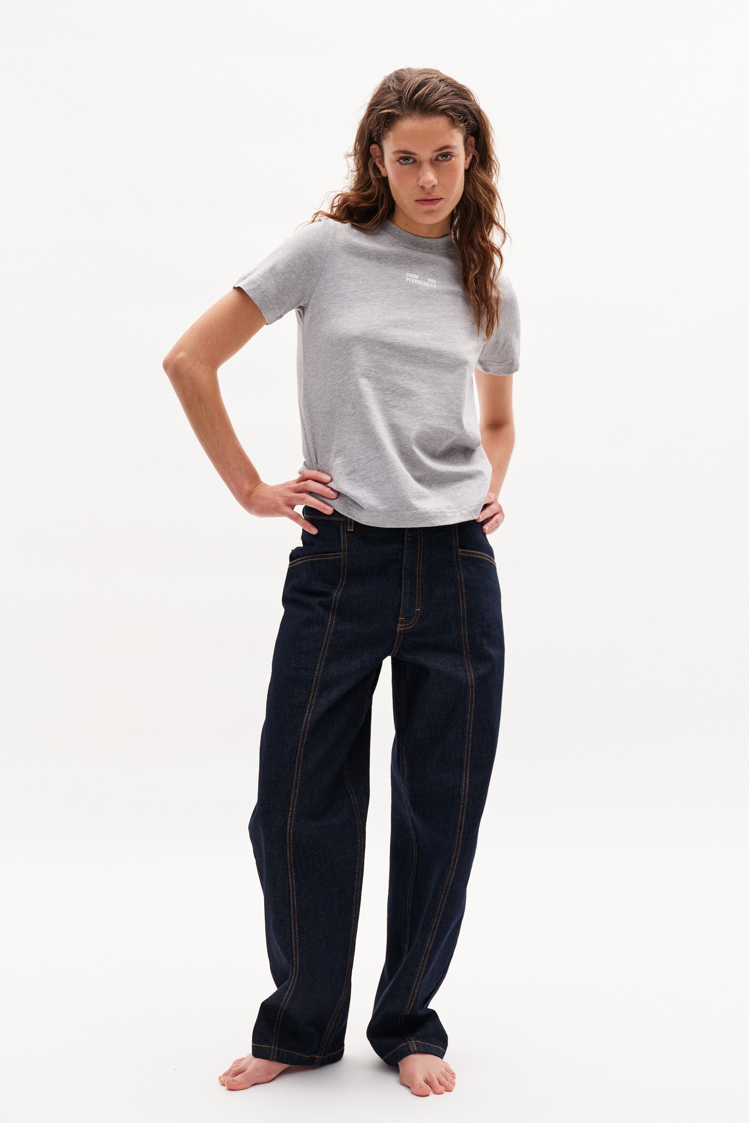 The NO 02 Jeans are one of our bestsellers - and we understand why, as the Baum classic is made to fit effortlessly into your wardrobe. The timeless denim jeans are designed with high waist, wide legs and a visible seam down the front and back. They are easy to style with one of our tops or t-shirts and are a trusty companion throughout your day.