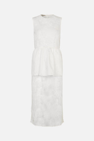 The Antonie Dress is an elegant piece made in a refined sheer floral lace. The sleeveless dress has a timeless silhouette with a fabric detail at the waist to make it more versatile. Style it with a pair of heels to complete the evening look.