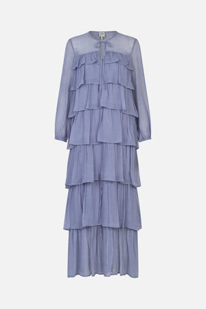The Arielle Dress is the perfect choice for any event with its floaty ruffled tiers throughout the body and skirt. The long dress is sheer at the shoulder and arms, and has ties at the neck and wrists. Wear it with heels to elevate the look or add some sneakers to keep it casual.