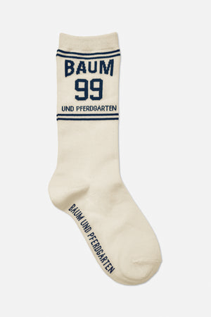 The Ling Socks are a true wardrobe essential with a classic tennis sock look designed for both comfort and style. The socks are made in a soft cotton blend with ribbing at the top for a stretchy fit. As a cool detail, we have added our Baum und Pferdgarten logo to the style.