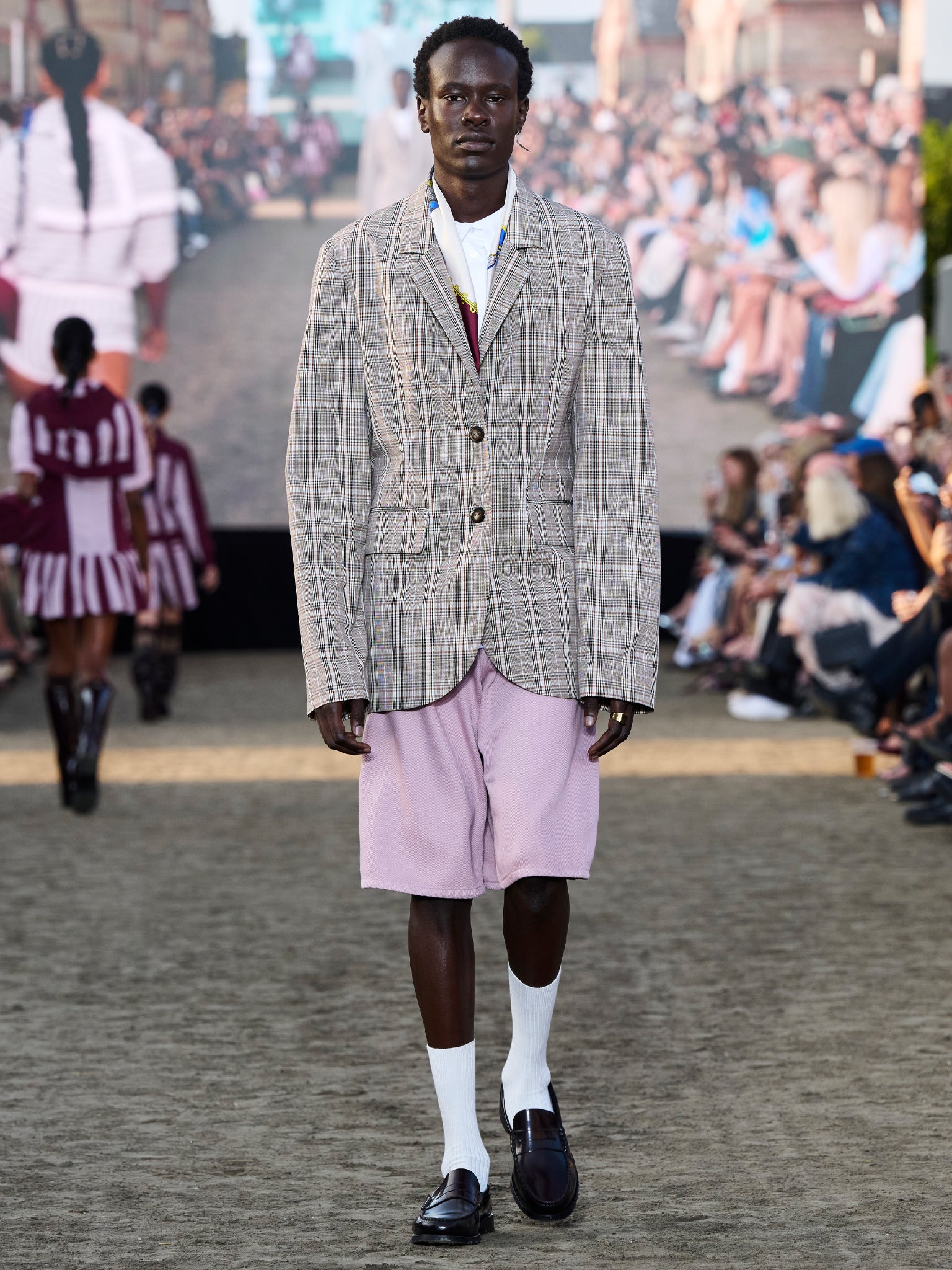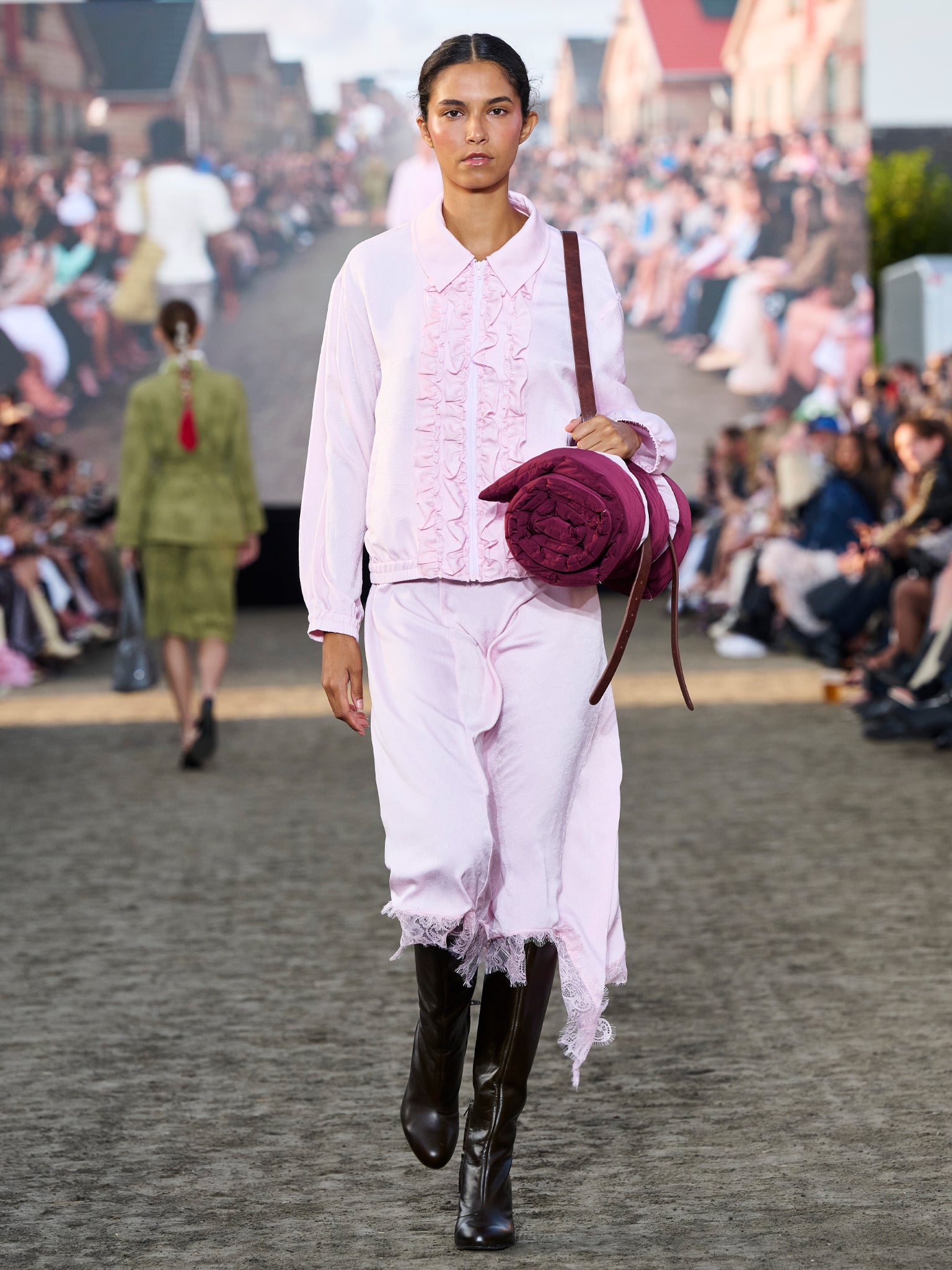 Baum und Pferdgarten’s Spring Summer 2026 collection, Notes from the Grandstand, gallops into the season with a refined take on contrast. Inspired by the world of the Derby, the collection draws from the vivid uniforms of jockeys, the movement of the racetrack, and the elegance of guests dressed to be seen. It’s a playful study of opposites, where sporting utility meets high-society glamour.