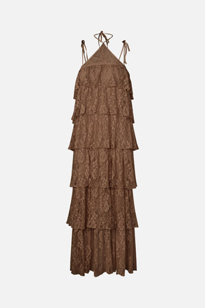 Capas con volantes para momentos especiales El vestido Annelise es un sueño de transparencias con preciosas capas de volantes. El maxivestido está confeccionado en delicado encaje floral y tiene un favorecedor escote halter, así como finos tirantes ajustables. Las capas de volantes le dan al vestido la perfecta fluidez y holgura. Para mayor comodidad, hemos añadido un dobladillo elástico en el pecho. Perfecto para tu próxima ocasión especial. Corte holgado Largo maxi Dobladillo elástico en el pecho Escote halter ajustable Tirantes finos ajustables Niveles de volantes