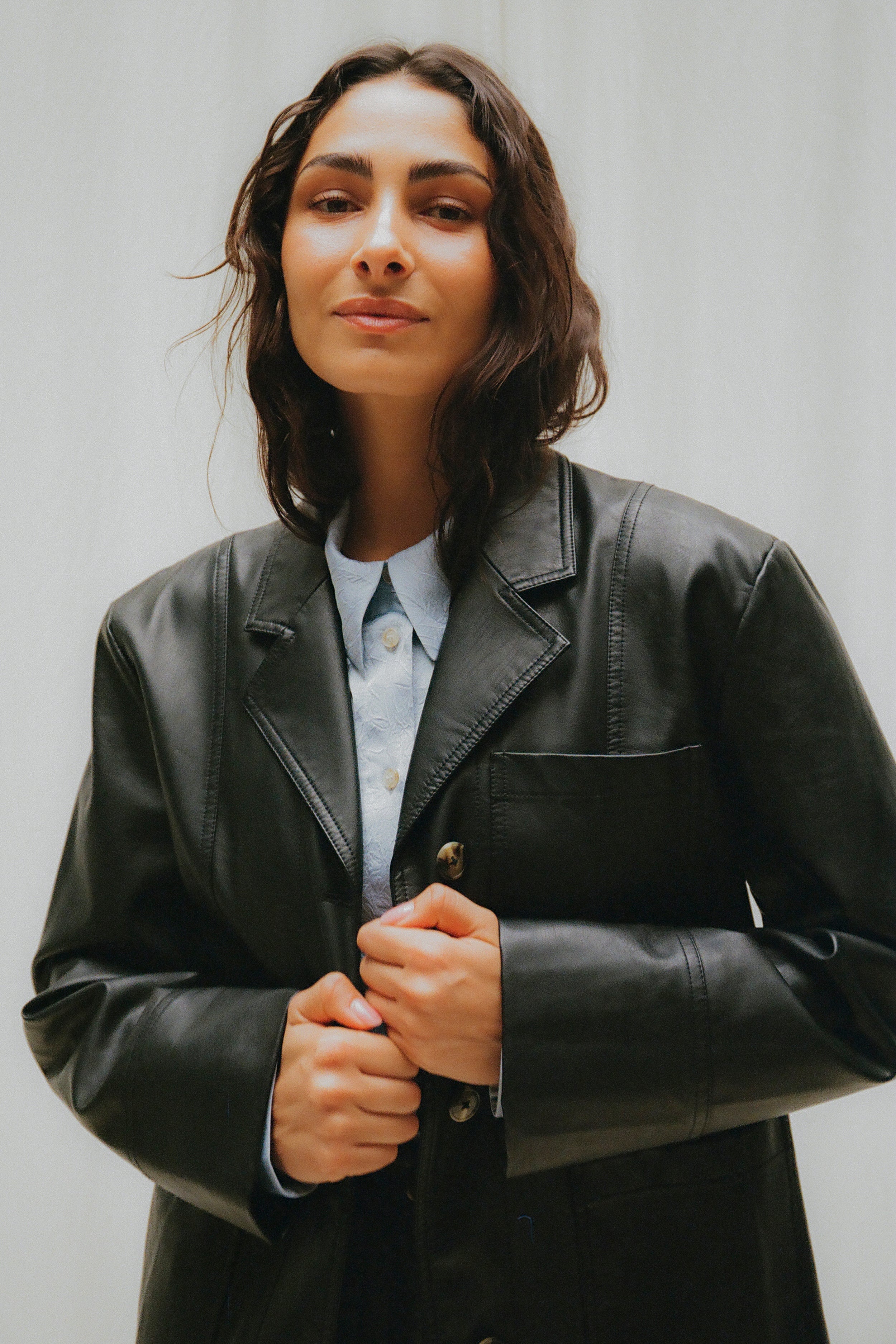 La Botilde Blazer es una versión fresca y moderna de la clásica chaqueta de piel sintética. Este blazer atemporal está forrado y tiene una solapa de muesca, así como tres bolsillos de parche para un look vanguardista pero sofisticado. Combínalo con una falda o unos vaqueros para conseguir un conjunto chic sin esfuerzo. Corte relajado Mangas extralargas Cuello de solapa con muesca Tres bolsillos de parche Cierre con botones