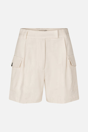 Los pantalones cortos Nimra son perfectos para llevarlos todos los días, con cintura alta y bolsillos frescos a los lados. Combínalos con una de nuestras camisetas para un look informal o póntelos con nuestro blazer Beau a juego para completar el conjunto elegante. Cintura alta Corte relajado Trabillas para cinturón Bolsillos laterales Bolsillos con aberturas en la parte trasera Cierre de gancho con cremallera