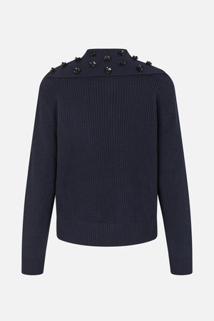 Le Clare Knit est un élégant pull en maille côtelée qui allie confort intemporel et finitions audacieuses. Il est doté de boutons-pression avec des sequins au col et d'un empiècement surdimensionné orné de sequins, qui se drape gracieusement dans le dos pour créer un motif scintillant et très distingué.