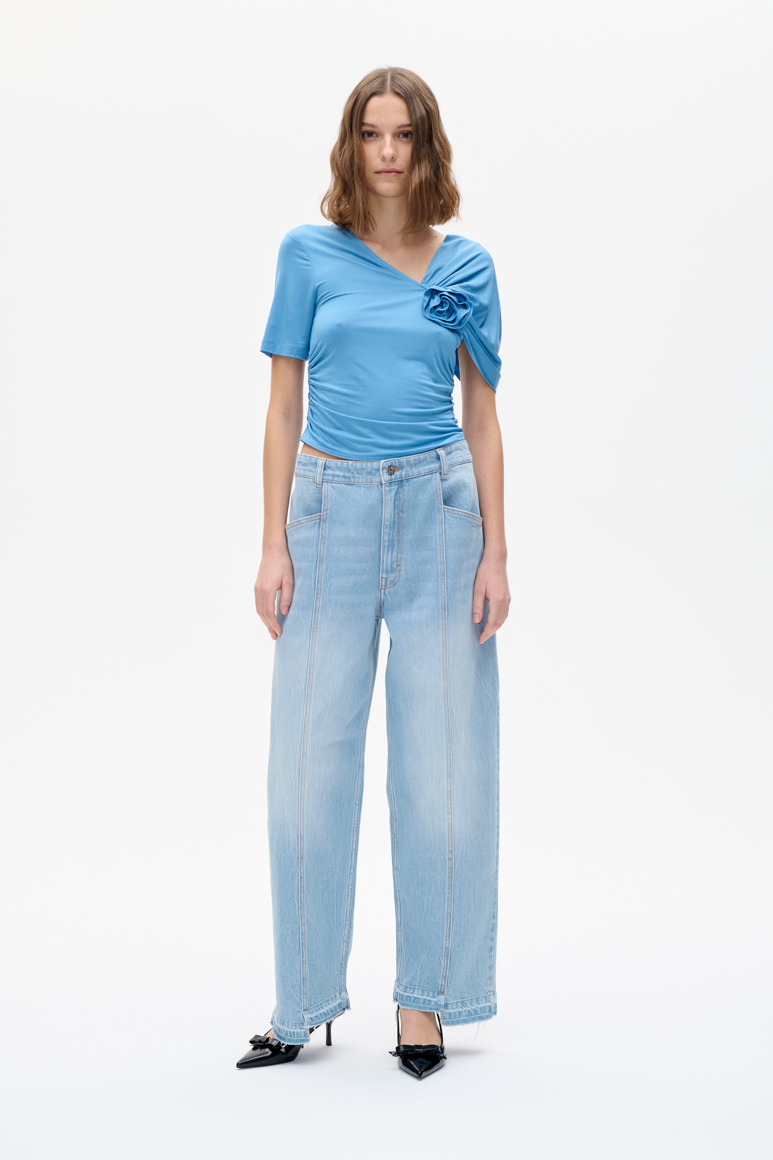 Avec sa ravissante rosette sur la poitrine, le haut Jansje est un modèle saisissant. Ce haut à manches courtes présente une silhouette ajustée et des détails froncés flatteurs sur les épaules et les côtés pour un style naturellement chic. Portez-le avec un jean et des talons pour un look élégant au quotidien. Modèle ajusté Extensible Coupe légèrement plus courte Rosette sur la poitrine Fronces sur une épaule