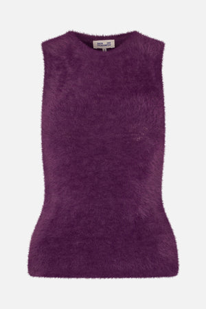 De Chaima Top is een stijlvolle must-have met een trendy jaren 90 uitstraling. De pluizig gebreide tanktop voelt getailleerd en comfortabel aan, en is perfect om elke dag te dragen met jeans of een broek. Combineer met een rok en hakken voor een meer formele speelse avondlook. Getailleerd Stretch Ronde hals