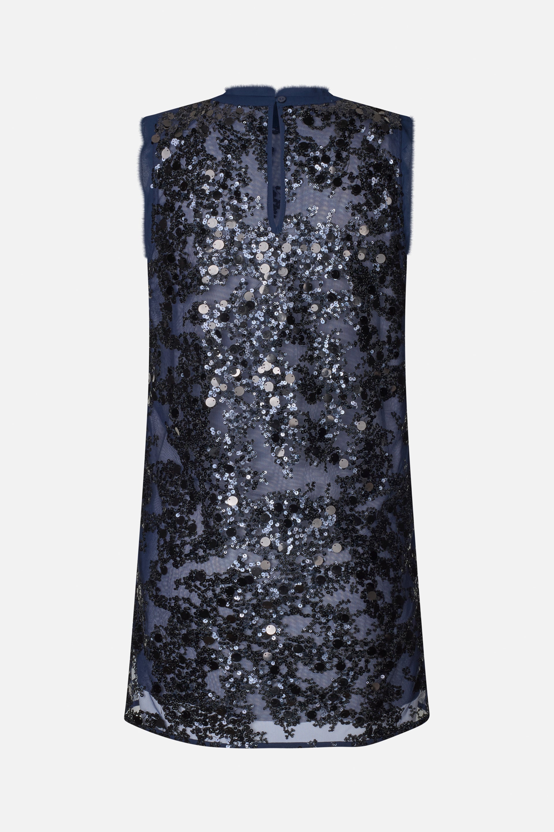 The Anira Dress is made in a shimmering sequins design that makes a shining statement. The sleeveless mini dress has a relaxed fit with a flattering crew neck and frayed edges at the neckline and shoulders. It has a mesh lining underneath the sheer sequins layer for some extra coverage. Perfect for special occasion - or perhaps your next event.