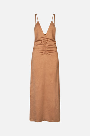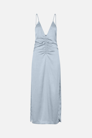 The Atalia Dress is a timeless slip dress made in softly draped satin that gives it its beatifully ruched details. The dress has a deep v-neck, adjustable straps, a slit as well as zip closure at the back. Style the dress with a pair of heels or flats to complete the look.