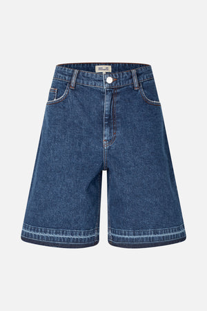 The Nolie Shorts are a timeless denim staple with high waist and loose fit. The denim jeans shorts have slightly frayed hems for a cool cut-off look. Pair them with a simple tee or blouse for an easy everyday outfit.